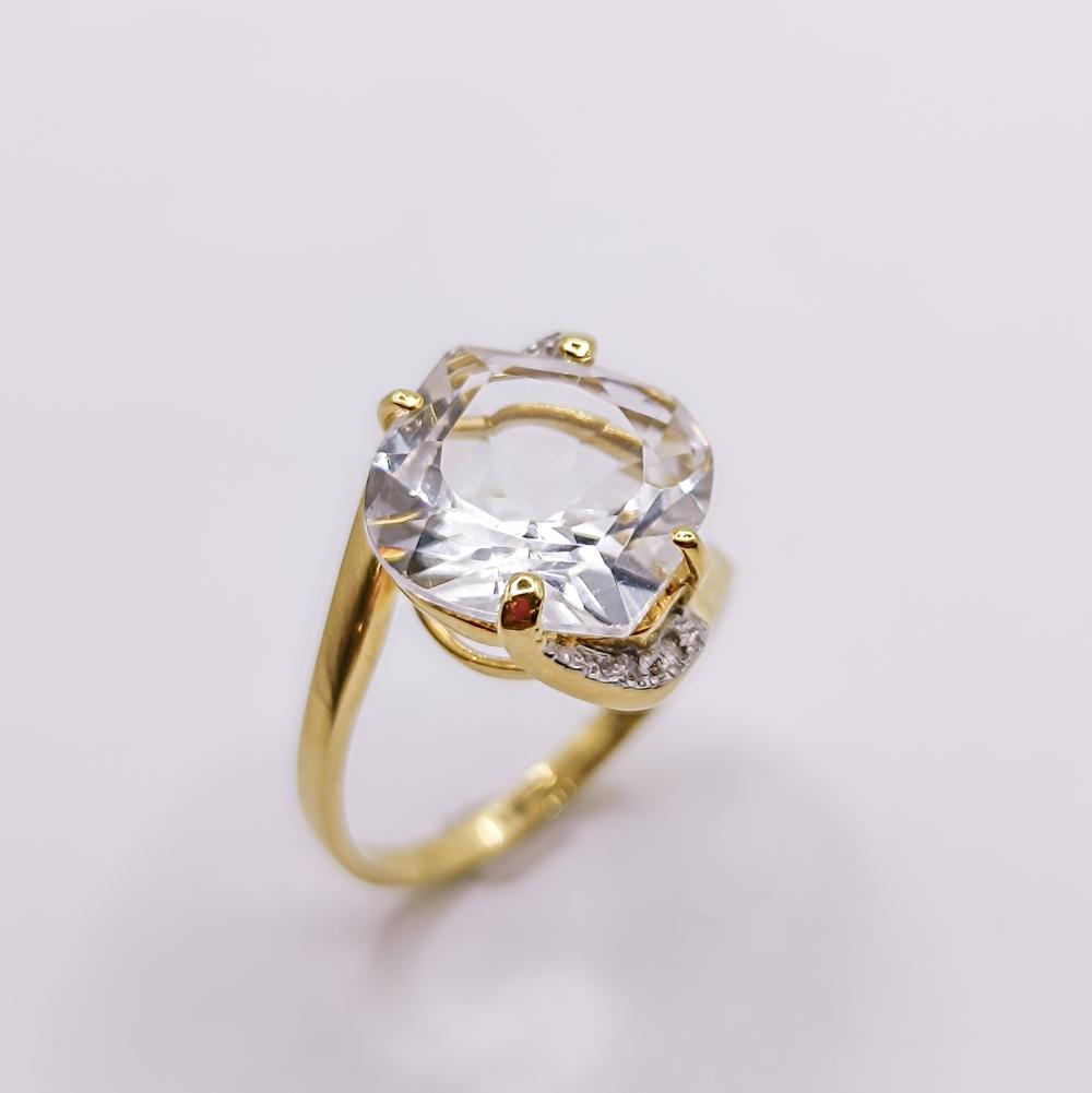Ouro 18k - Pedra central Cristal Diamantes na laterais